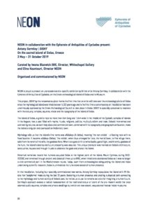 • NEON brings exciting contemporary art to a wider audience by putting together free exhibitions in public and private places in Athens and Greece that offer new and powerful experiences to the public and their interaction with urban life. NEON does not restrict itself to just one space, it energizes public spaces in Athens and the periphery.