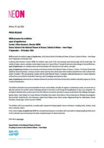• NEON, founded in 2013 by collector and entrepreneur Dimitris Daskalopoulos, works to bring contemporary culture closer to everyone, in the firm belief in the ability of contemporary artistic creativity to rouse, emotionally move and motivate. It also aims to contribute to the wider efforts being made to revitalise the city and inspire the daily lives of its citizens. NEON does not restrict itself to just one space. It activates public spaces in Athens and the periphery. NEON advocates all institutions which are established in the field of learning, new productions and the dialogue with the city.
