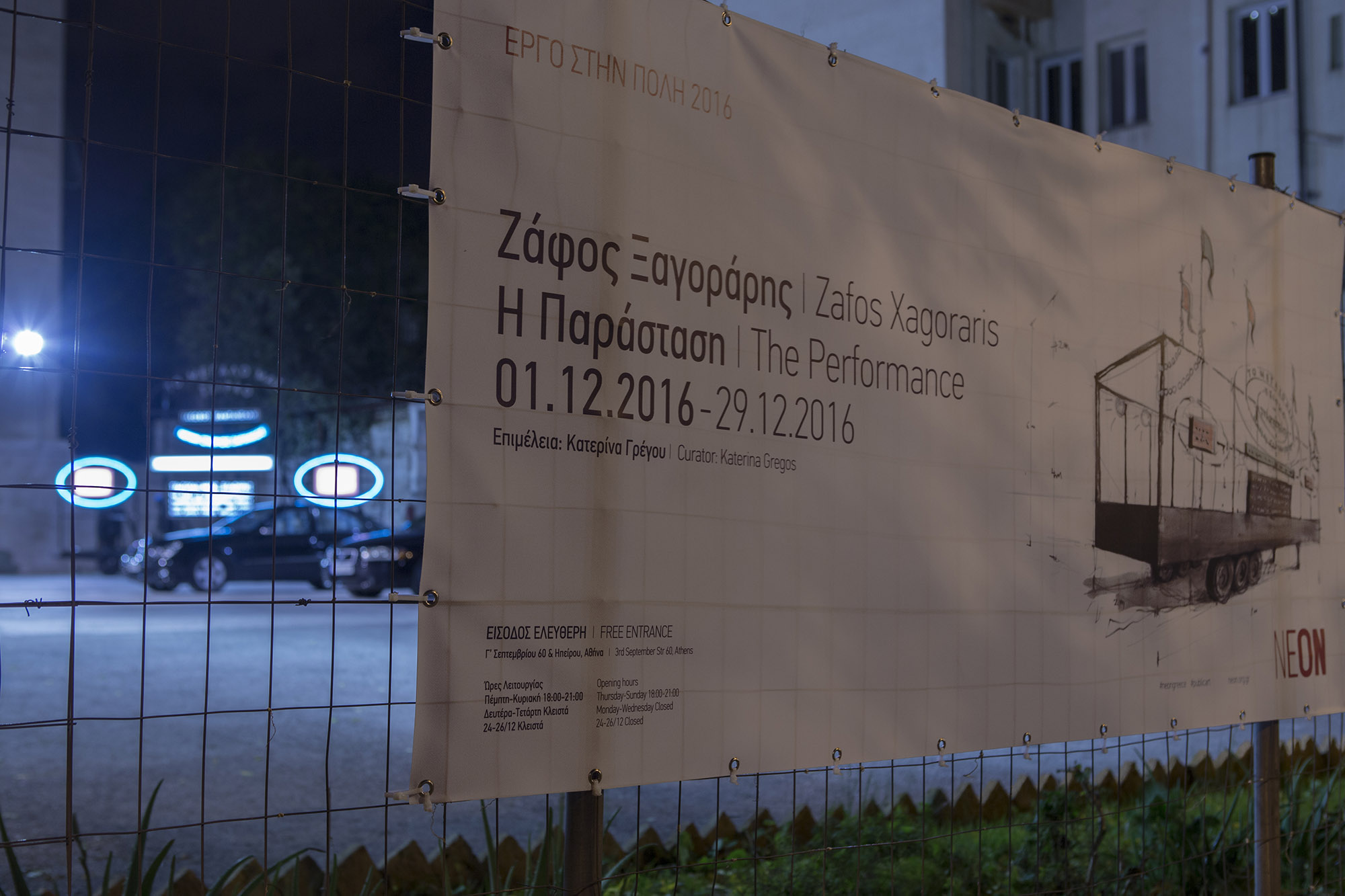 • NEON, founded in 2013 by collector and entrepreneur Dimitris Daskalopoulos, works to bring contemporary culture closer to everyone, in the firm belief in the ability of contemporary artistic creativity to rouse, emotionally move and motivate. It also aims to contribute to the wider efforts being made to revitalise the city and inspire the daily lives of its citizens. NEON does not restrict itself to just one space. It activates public spaces in Athens and the periphery. NEON advocates all institutions which are established in the field of learning, new productions and the dialogue with the city.
